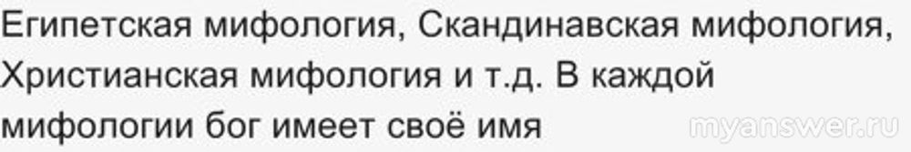 Египетская мифология, Скандинавская мифология, Христианская мифология и т.д. В каждой мифологии бог имеет своё имя.