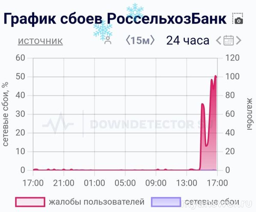Эта ошибка свидетельствует о сбое в работе мобильного приложения Россельхозбанка. Доступа в приложение нет. Сегодня, 4 января 2025 года график сбоев РСХБ онлайн выглядит следующим образом: