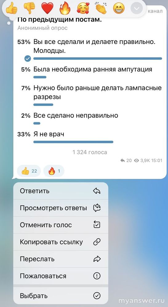Есть голосование/опрос на каком-то канале в Телеграм (в данном случае это анонимный опрос):