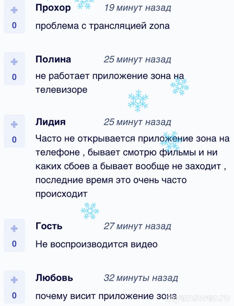 Из Тверской, Калининградской, Новосибирской, Омской областей, Республики Хакасия поступали сегодня сведения от пользователей, наблюдающих проблемы в работе ZONA, и 71 процент составил сбой мобильного, а сбой сайта - 11%.га данный момент пользователи констатируют то, что ZONA плохо грузит фильмы на телевизоре под вечер; не загружается сайт; не открывается приложение; не работает ZONA на телефоне.