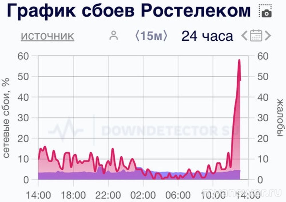 У провайдера Ростелеком тоже были сбои в работе, по отзывам пользователей, возможно сегодняшний масштабный сбой коснулся и Ростелекома.