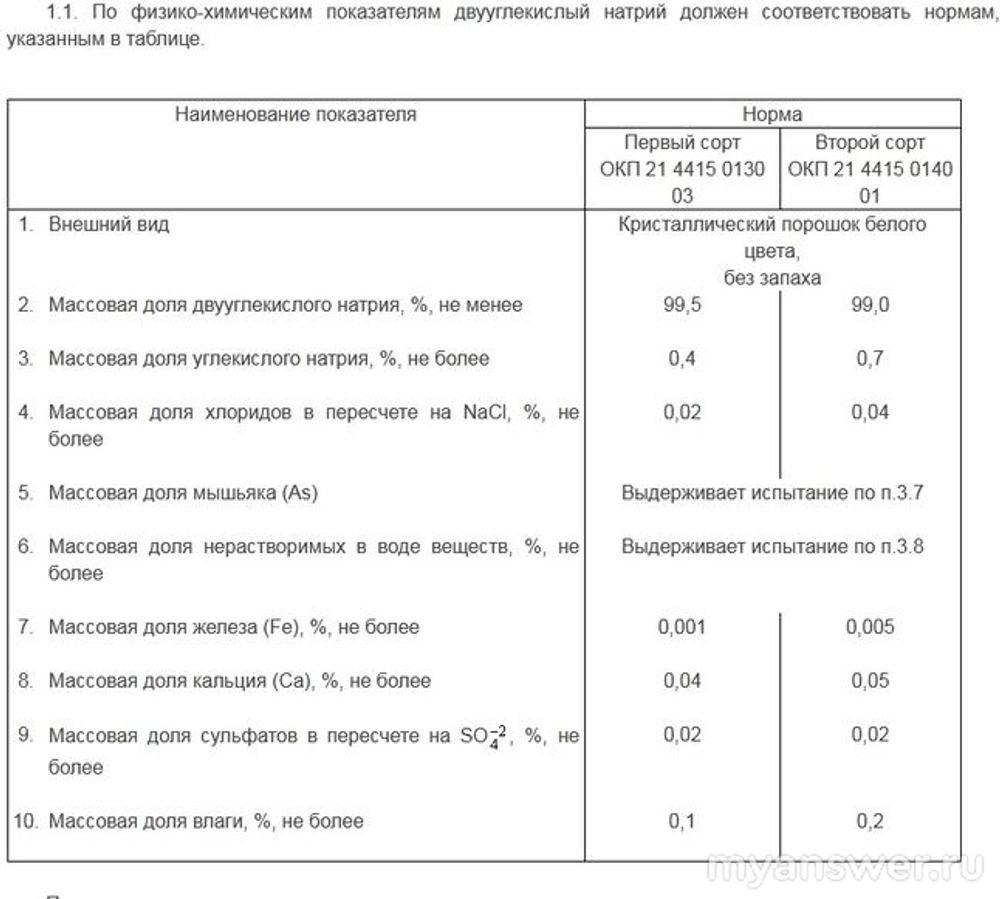 Выдержка из ГОСТа 76-го года, на отечественную пищевую соду: