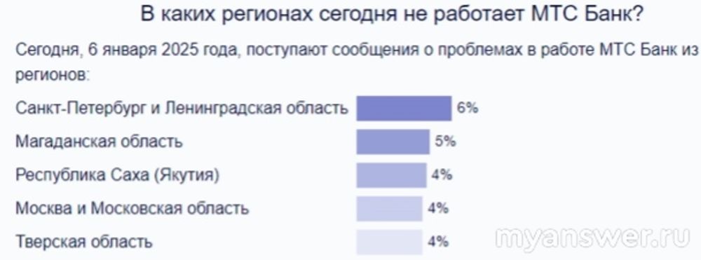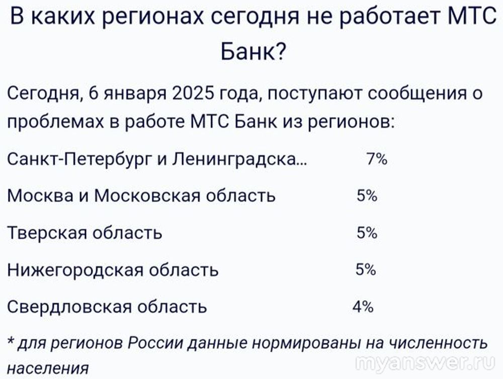 У многих пользователей не работает МТС банк 6 января 2025 года.