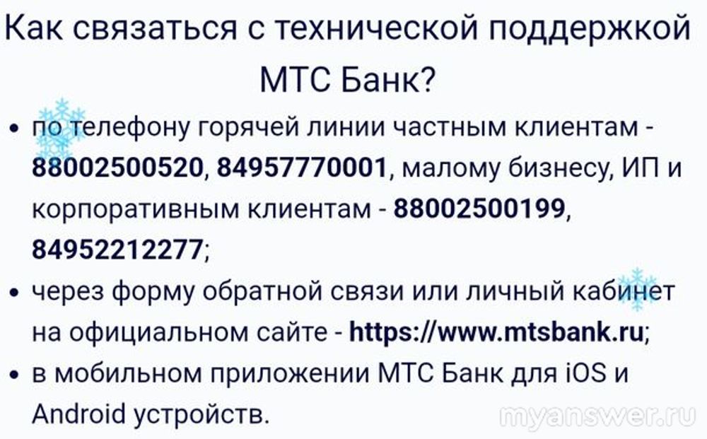 Если и это не поможет, то возможно нужно просто обратиться за помощью к специалистам службы поддержки МТС банка.