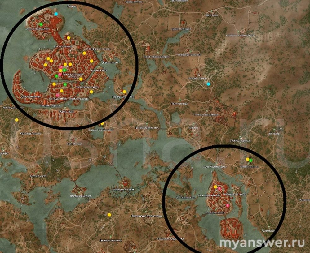Если мы сравним на карте площадь Новиграда (верхний слева) и Оксенфурта (нижний справа), мы обнаружим, что площадь последнего примерно раза в три меньше. Это дает нам основание предполагать, что в Оксфенфурте максимум десять тысяч жителей. Но все же смею предположить, что в Новиграде плотность населения выше - автономия города и его самостоятельная экономика привлекает туда гораздо больше людей и нелюдей всех мастей, тогда как население Оксенфурта пополняется в основном студентами, которые то приезжают, то уезжают, поэтому могут быть сезонные колебания. Поэтому я бы уменьшила предполагаемое число процентов на 20, а то и 30.