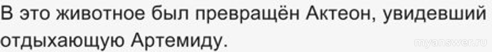 В это животное был превращён Актеон, увидевший отдыхающую Артемиду.