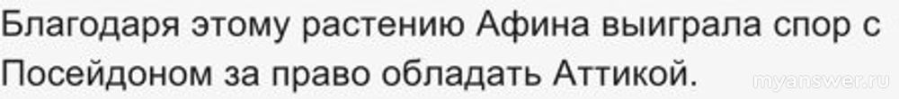 Благодаря этому растению Афина выиграла спор с Посейдоном за право обладать Аттикой.