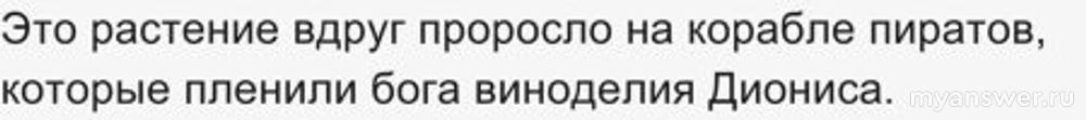 Это растение вдруг проросло на корабле пиратов, которые пленили бога виноделия Диониса.