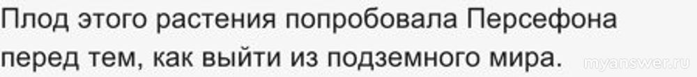 Плод этого растения попробовала Персефона перед тем, как выйти из подземного мира.