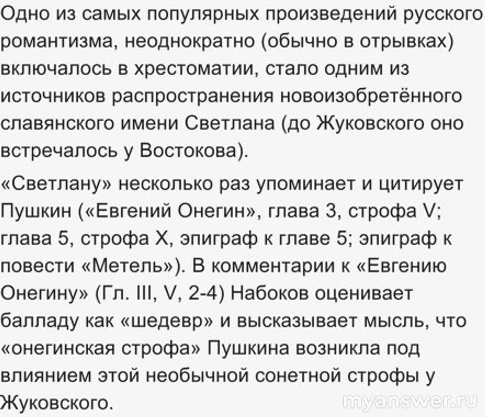 Имя Светлана стало популярным после одноименной баллады, написанной Жуковским.