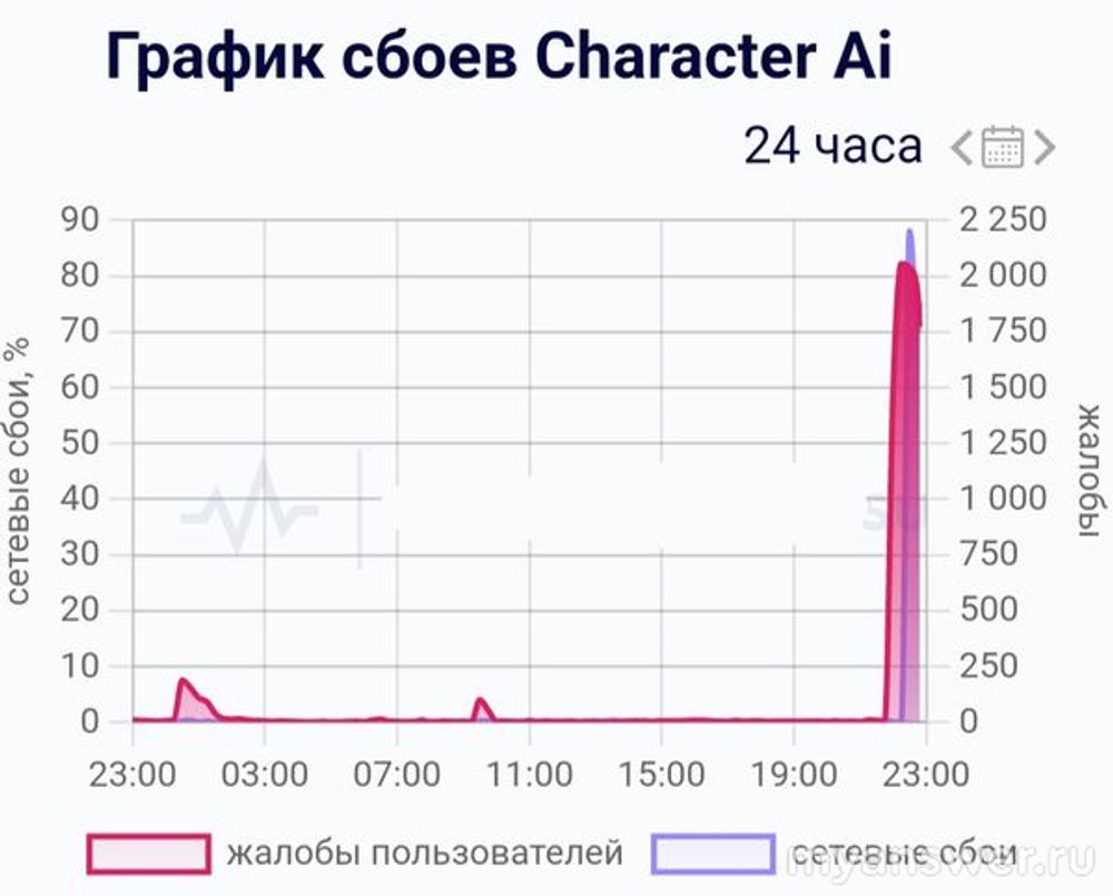 По неполадкам сервиса Character Ai статистика сбоев на основании сообщений пользователей выглядит так: