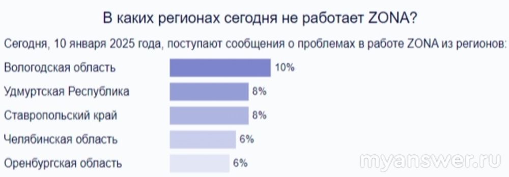 В ночь на субботу, 11 января 2025 года, продолжается начавшийся ещё накануне вечером массовый технический сбой в работе популярного сервиса "Зона". Сейчас о своих возникших технических проблемах постоянно сообщают многие пользователи "Зоны" из таких российских регионов, как Вологодская область, Удмуртия и Ставропольский край. По конкретным срокам восстановления работоспособности "Зоны" в настоящее время лучше всего узнавать в его службе технической поддержки, если к ней, конечно же, также имеется доступ.
