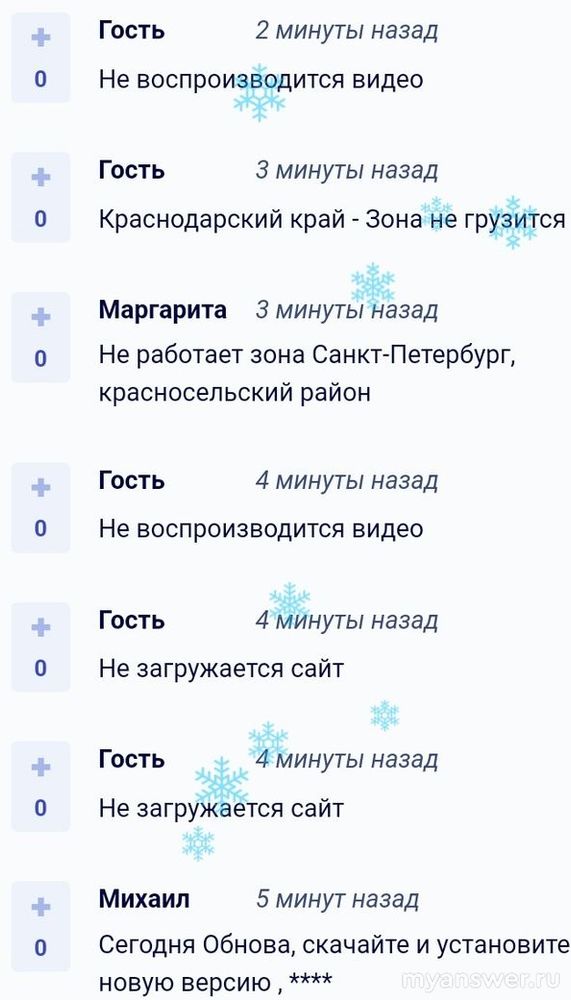 Здесь не лишним будет сказать, что данным онлайн-сервисом довольно-таки много людей пользуются. Я лично, не удивляюсь тому, что там иногда соби в работе происходят. Пользователей много, нагрузка на сервер большая. Десятого января вечером, когда во многих регионах нашей страны уже наступило следующее одиннадцатое число люди заметили неполадки. Видео не грузится, на телевизоре не работает, приложение зависает, требует его обновить, но при попытке вылетает. Пик жалоб отмечен в девятнадцать часов тридцать девять минут по Москве, когда сразу тридцать один человек заявил о неполадках. География жалоб от Вологодской области и до Оренбургской области: