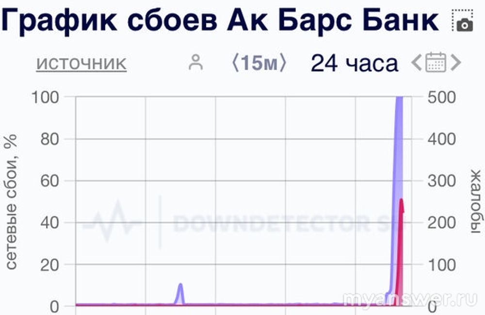 Это видно на сайте детектора сбоев на графике, очень много жалоб от клиентов банка, что не могут зайти в приложение банка онлайн, невозможно кредит заплатить, товары оплатить, перевести деньги.