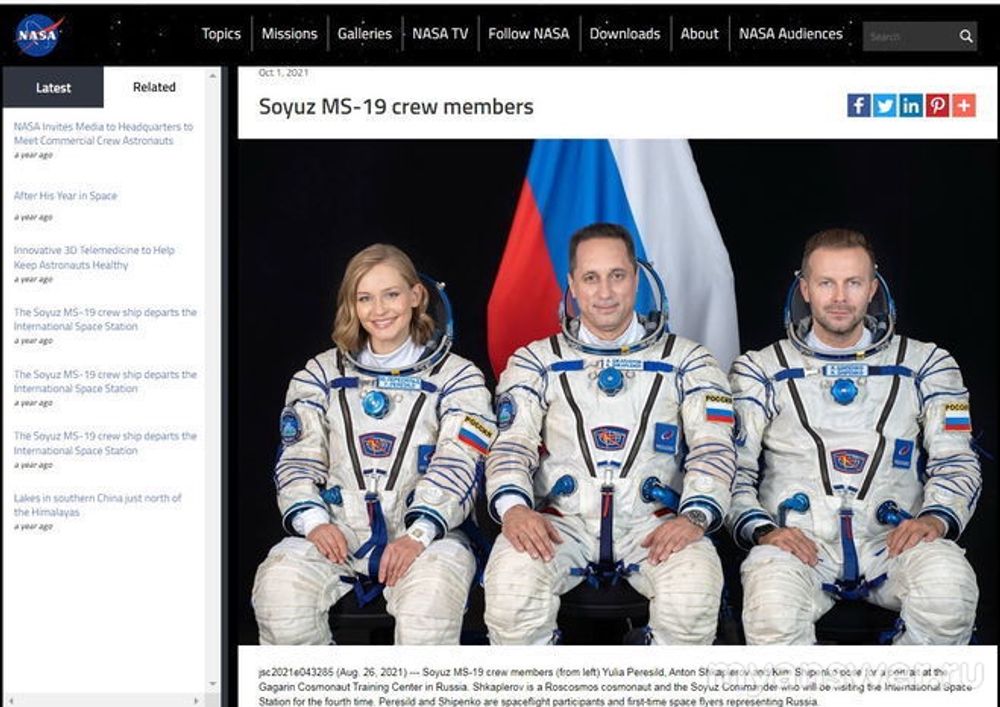 Дело не вере, а в фактах - Юлия Пересильд и Клим Шипенко реально были на МКС с 5 по 17 октября 2021 года, трансляцию их полета вели в прямом эфире и Роскосмос, и НАСА.