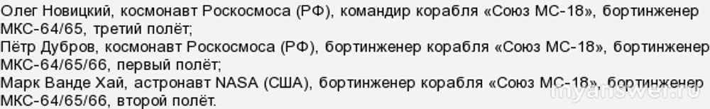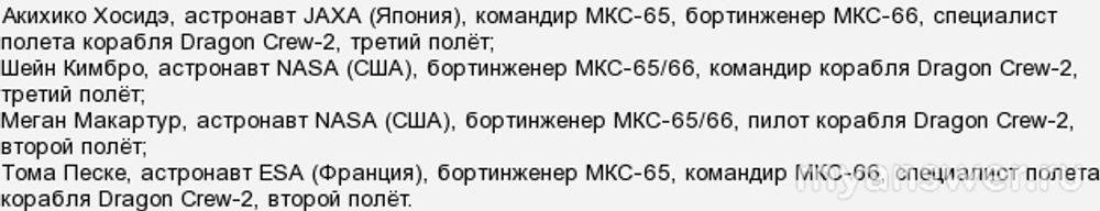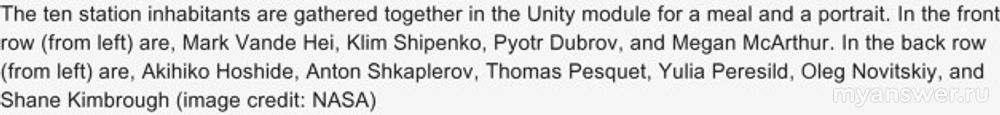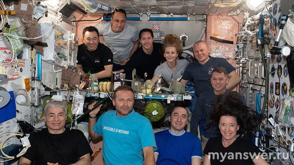 В тот момент на Станции работала многонациональная команда космонавтов и астронавтов экспедиции МКС-6: все они, 7 человек, были свидетелями прилета актрисы и оператора.