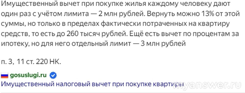Мне возразят, что нет денег. А я скажу, где найти деньги на это. Если Вы в жизни не пользовались налоговым вычетом при покупки жилья, Вы сможете вернусь до 260 тысяч рублей. Этой суммы более чем достаточно для переезда и даже для минимального косметического ремонта, тем более, что живя много лет в старой квартире Вам все равно нужно хотя бы раз в 10 лет переклеивать обои и обновлять потолки, менять покрытие на полу, например, линолеум