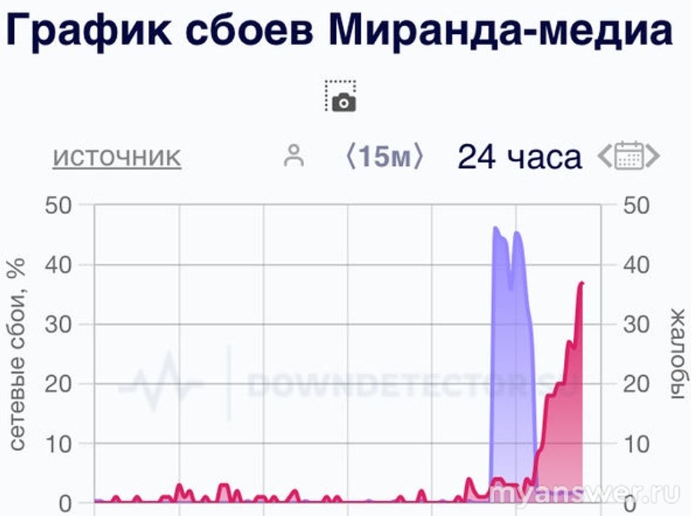 Да, не работает интернет Миранда Медиа сегодня, сбой ощутимый, вот по нему соответствующая диаграмма, показывающая его протекание во времени: