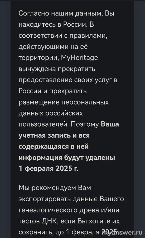 Получил предупреждение из которого не понял, будет ли после 1го февраля работать мое древо MyHeritage Family Tree Builder на ПК, или оно тоже попадает под санкции.Я после своего дилетантского анализа более 15 программ с семейными древами для себя выбрал бесплатную прогу GRAMPS, куда и импортировал файл Gedcom c сайта MyHeritage без всяких затруднений (167 персон), правда, без фото. GRAMPS менее удобен и не очень красочно оформлен, но у нее очень хорошая русскоязычная поддержка на сайте, возможности те-же, а фото я скачал с сайта MyHeritage по одному, трудно у них найти фотоальбом. Сегодня 02.02! от MyHeritage пришло с предложением ваучера на скидку!