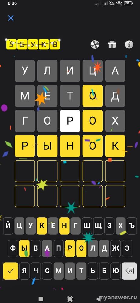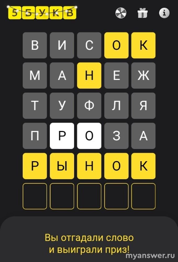 Третьим словом сегодня было набрано слово "рынок" и я угадал верный ответ. Ура.