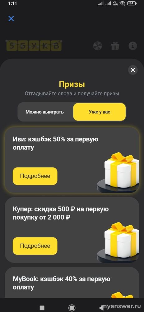 , но как и в большинстве случаев, этот приз останется неиспользованным.Теперь перейдем к загаданному слову, которое мне удалось отгадать с четырех попыток.
