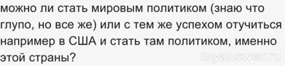 Или вообще, можно ли стать мировым политиком (знаю что глупо, но все же) или с тем же успехом отучиться например в США и стать там политиком, именно этой страны?