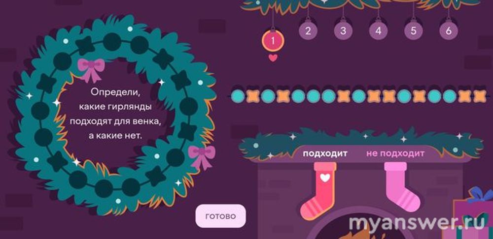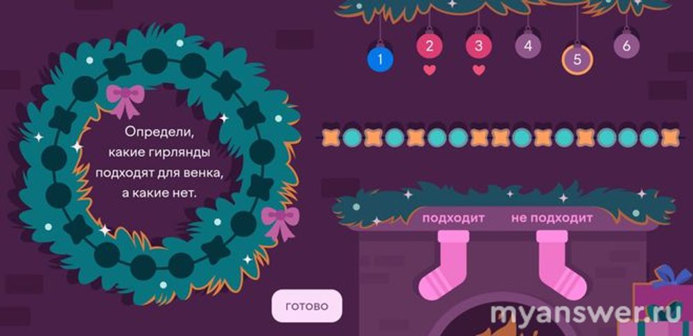 Нам предстоит выполнить задание на uchi.ru и определить какие гирлянды подходят для венка, а какие нет.