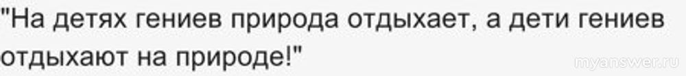 Многие считают себя гениями потому что ... отдыхает на их детях. Что пропущено?