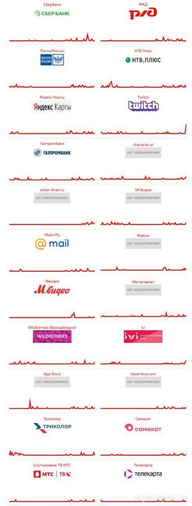 Сервисы доставки, Википедия, РЖД, а также банки и госучреждения, а также все магазины, где можно было купить по куар коду, все полегло.