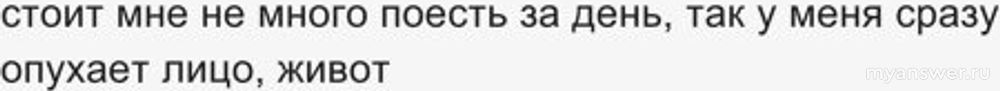 Здравствуйте. У меня проблема, стоит мне не много поесть за день, так у меня сразу опухает лицо, живот, я чувствую кости когда сижу и лежу. Так вот мне даже сидеть и стоять долго нельзя, я жутко начинаю худеть, так слабость ещё чувствую. Мне очень это надоело уже. И потом мне есть очень тяжело, придётся пихать в себя еду, хотя голода не чувствую. Что мне делать? Может мне преимущественно есть белок? Ну очень неприятно лежать на своих костях, от этого всего ещё и эмоциональный фон страдает, полнейшая апатия из-за дефицитов. Сыпятся волосы, ломкие ногти, крошатся зубы. Порекомендуйте может специальный рацион за день. Спасибо