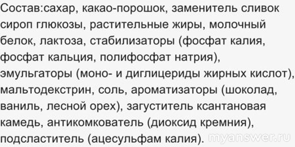А насчет шоколада в пакетиках, позвольте привести его состав: