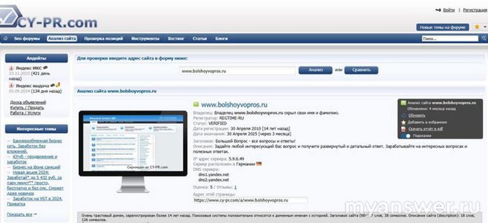 Выдает там много чего, также в разделе инструментарий можно ввести айпи сайта и убедиться, что на этом адресе находится только этот сайт.