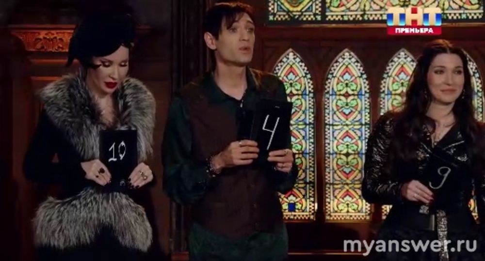 Но, коллеги в готическом зале не были так щедры на оценки Артему, 10-ку ему поставила только Ольга Якубович, а самую низкую оценку 4 выставил Александр Шепс.