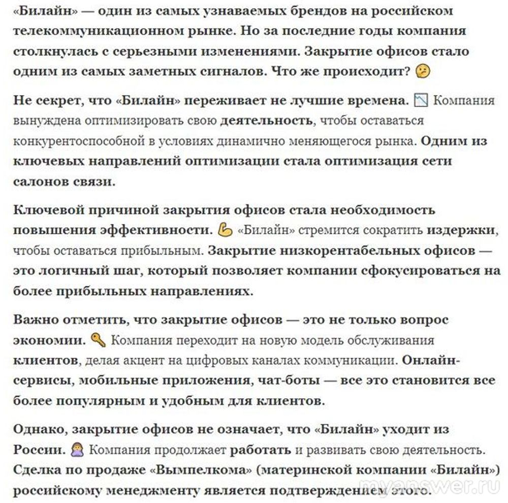 На моём веку уже столько офисов закрылось в которых я оплачивал какие- либо услуги, что пальцев не хватит пересчитать. Это и офис моего домашнего интернета и офис оплаты ЖКХ и многие другие. На первый взгляд на ум приходит одно- тупо сокращают рабочие места, чтобы не платить зарплату и перевод платежей в обезличенную сферу, где часто можно увидеть такий ответ "Наше письмо не требует ответа...." и так далее. Чем дальше тем больше будут закрывать офисы. Примером стал первый системно значимый интернет Т-банк, который практически не имеет розничных отделений. Помню как ещё давно ездил на 2-ю Тверскую Ямскую в Москве по поводу стёртых цифр на карточке (тогда нужно было монеткой стирать на карточке полоску и появлялись циферки). Так вот что про меня, то Би Лайн мой первый оператор сотовой связи и офисами Би-Лайн я лично за всё время пользовался раза 3. Один раз когда нужно было принести паспорт. И вообще, я уже чаще пользуюсь телефонией и интернетом Т-Мобайл. Таким образом закрытие офисов Би-Лайн можно объяснить снижением интереса пользователей , а так же с расширением возможностей в Личном Кабинете, где можно много чего "порешать" без очного посещения офисов Би Лайн. Хотя лично я против закрытия офисов в любых сферах. Всё таки тет-а-тет решать некоторые вопросы привычней. С приходом к нам капитализма в обиходе появились такие слова как ребрендинг, оптимизация и прочие безликие термины, лишённые человечности, так вот одной из причин массового закрытия офисов Би Лайн и стали оптимизация и "повышение эффективности".