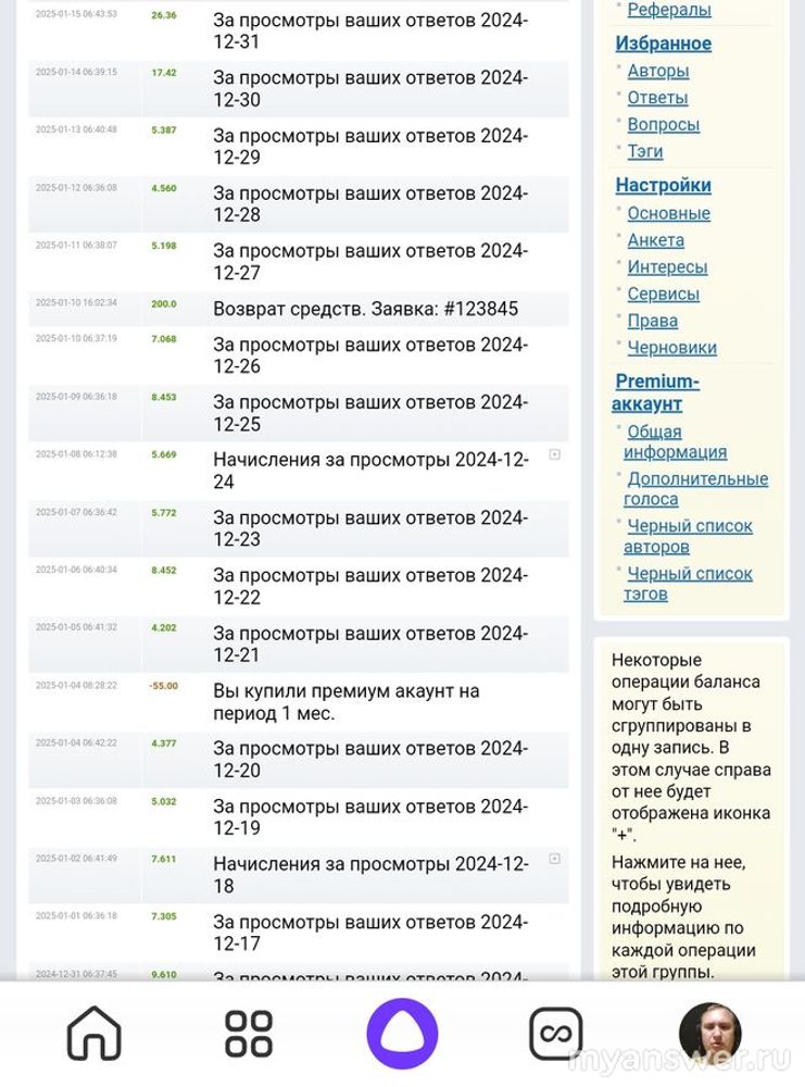 Я заработал на сайте "Большой вопрос" за декабрь 275 кредитов. Отвечал на вопросы про интеллектуальные игры и иногда про работу сервисов. Хватило мне на покупку премиум-аккаунт и на связь. Правда, мою первую транзакцию в новом году отклонили. Пришлось выводить кредиты снова. Пришли почти моментально.