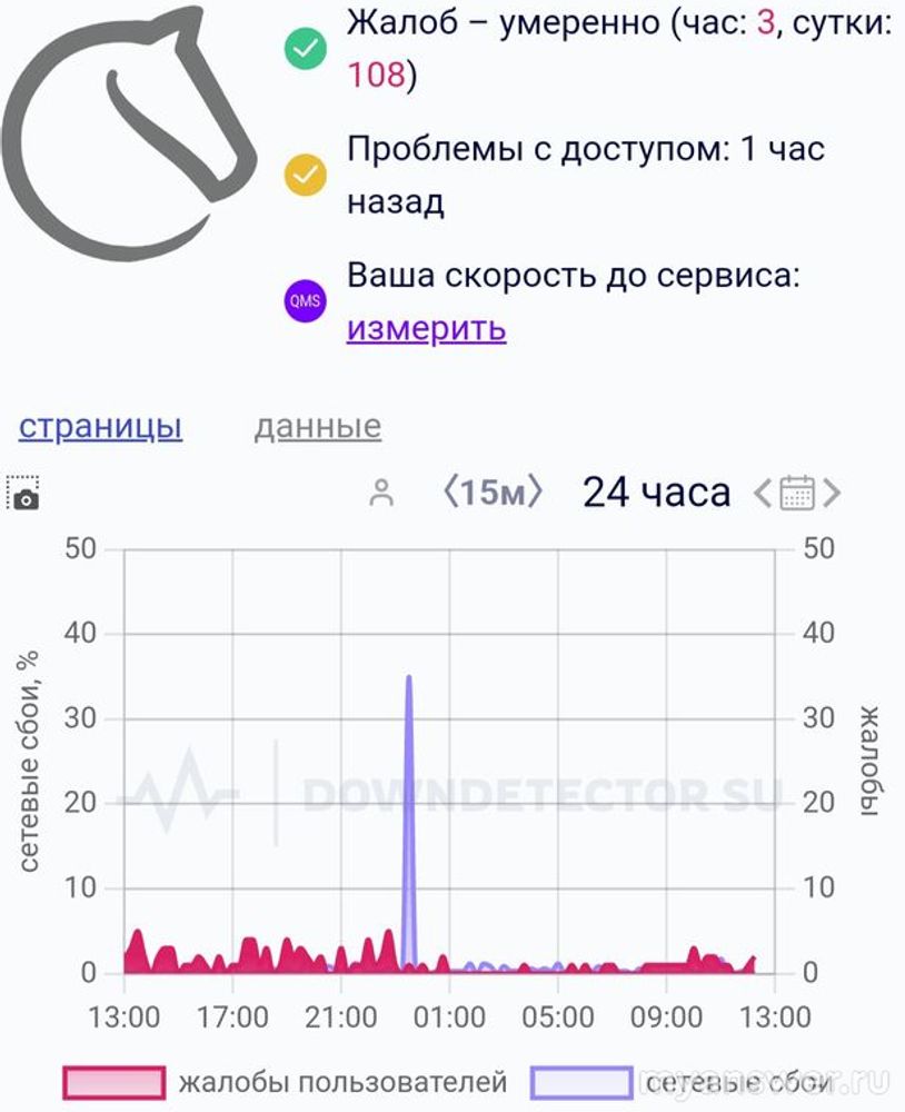 Обычно такая ошибка указывает непосредственно на проблемы в работе серверного оборудования, на котором работает шахматный сайт Личес (Lichess) либо свидетельствует о сетевых сбоях, не связанных с работой вашего провайдера. Такая проблема имела место быть непродолжительное время в районе полуночи 19 января 2025 года, что видно на графике сбоев.