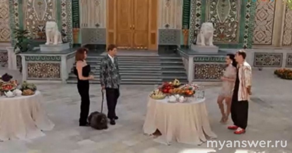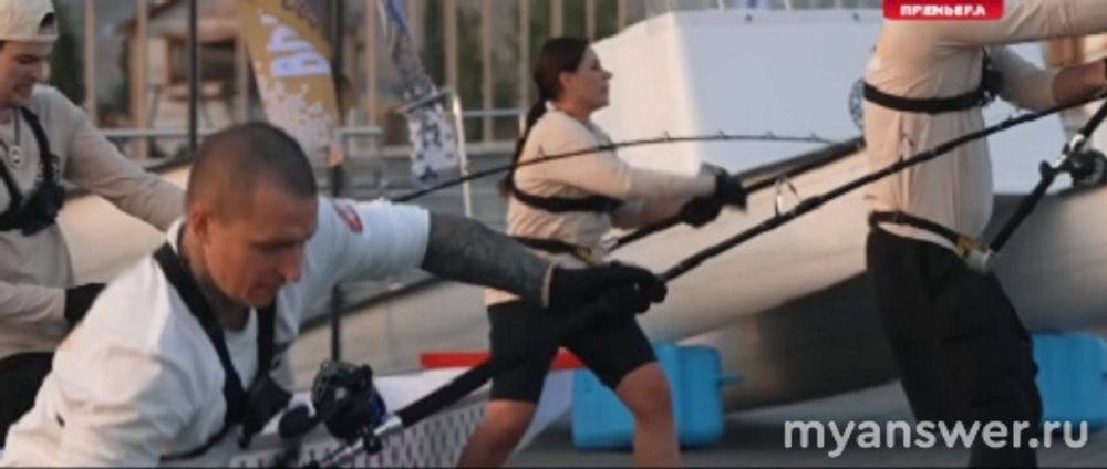 Нужно на вытянутой руке продержать рыбу. Торнике справился с заданием. Команда посовещалась, и взяла чай.
