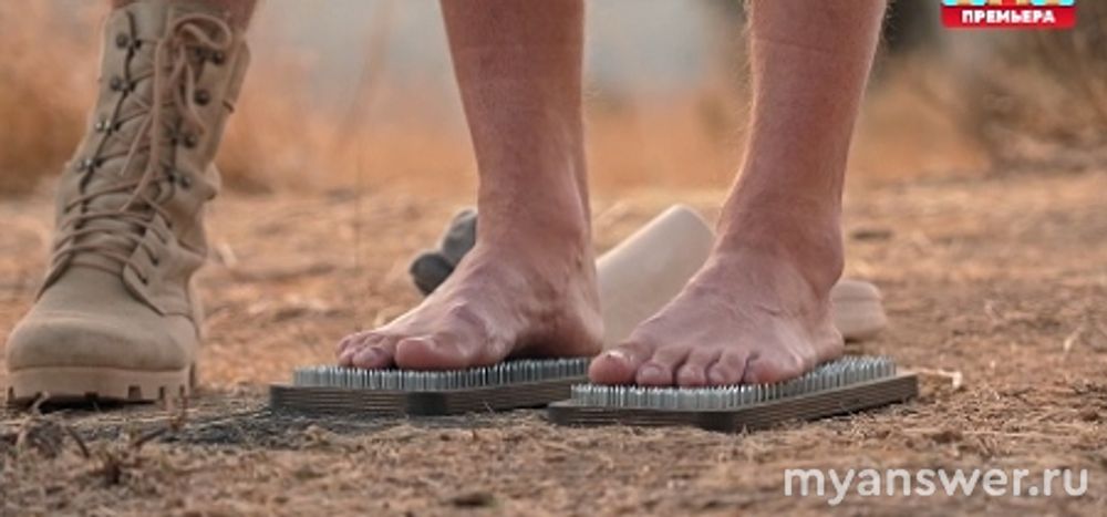 Никита из бывшей народной команды, предложил звездам простоять на гвоздях.