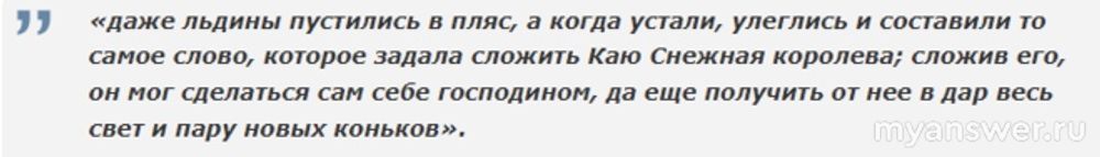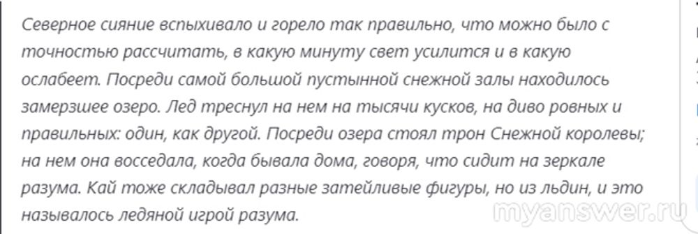 А ведь в ней царство снежной королевы — это не только царство холода. Но еще и царство разума. Когда Кай складывал различные слова из ледяных осколков, это называлось ледяными играми разума.