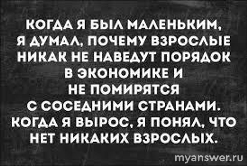 Некоторые, даже очень взрослые, люди, такие, например, как я, а я, слава Богу, уже 40+, чувствую себя не достаточно взрослый.