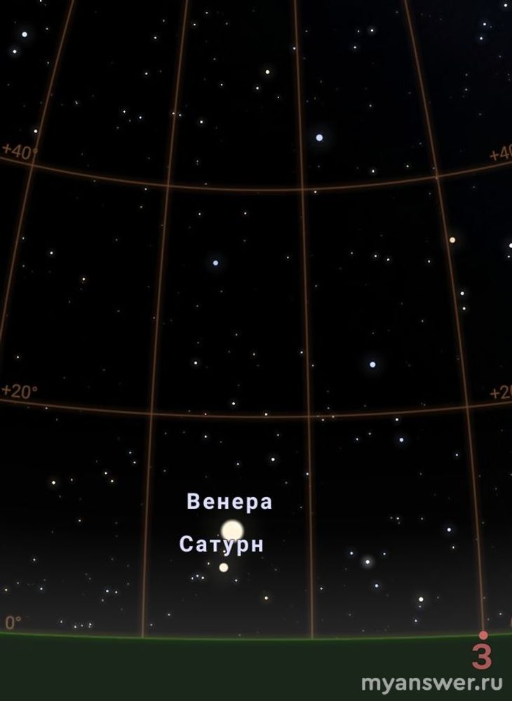 Когда смотришь на планеты (Марс-Юпитер-Венера), кажется, что они находятся на одной прямой линии.