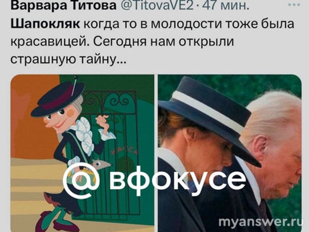 Но, главное тут, из-за чего и мем начал образовываться, это шляпка Меланьи, фото вот такое: