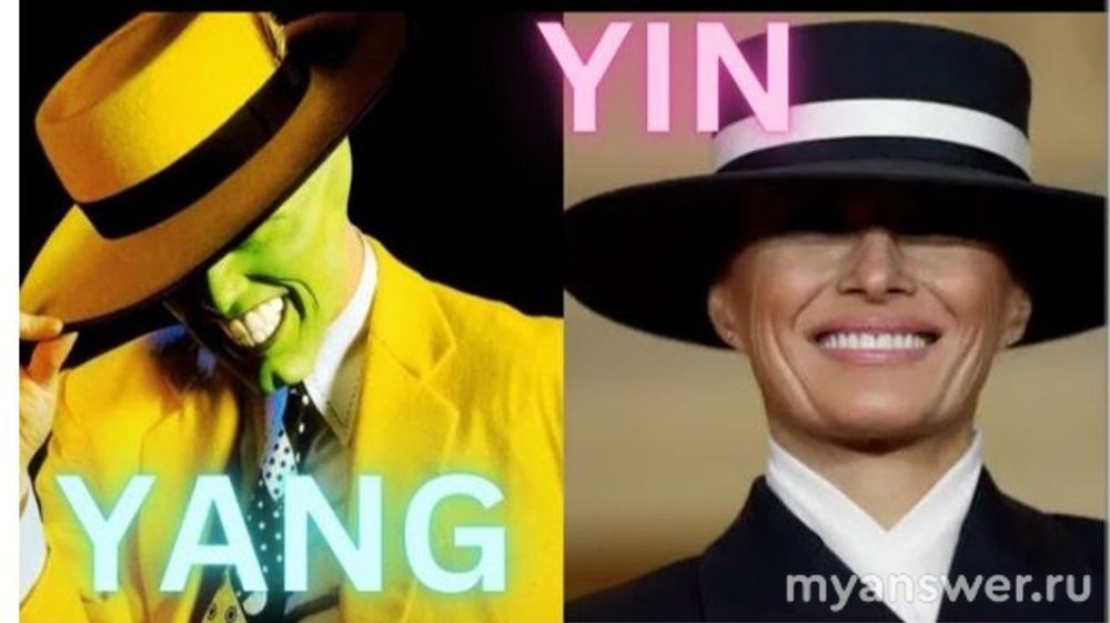 Шляпа столь низко сидит, словно Меланья старается спрятать внутреннее торжество, ну, чтобы не рассмеяться даже что-ли, шутят, что Трамп попросу ей за присутствие заплатил