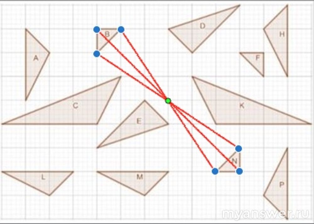 4) Фигуры B и N симметричны (можно найти точку - центр) и проверить. Центральная симметрия