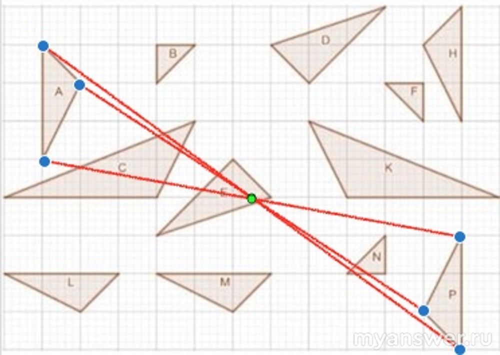 3) Фигуры E и D симметричны (можно найти точку - центр) и проверить. Центральная симметрия