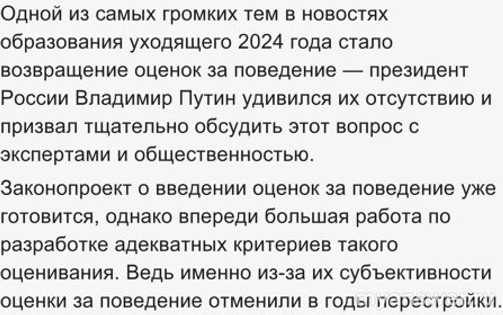 Впервые новость об отмене 5-бальной системы оценок в школах России появилась в телеграм-каналах в декабре 2024 года. Вот если бы об этом написал Минпросвещения или Минобразования! В конце января 2025 года эта информация повторилась. Полюбопытствуем, какие же будут новые оценки, может быть ссылки приведут на какой-нибудь авторитетный источник. Но, увы, лишь какой-то неизвестный частный канал закрытого сообщества, вероятно, за его созданием могут стоять мошенники и им есть, что скрывать.
