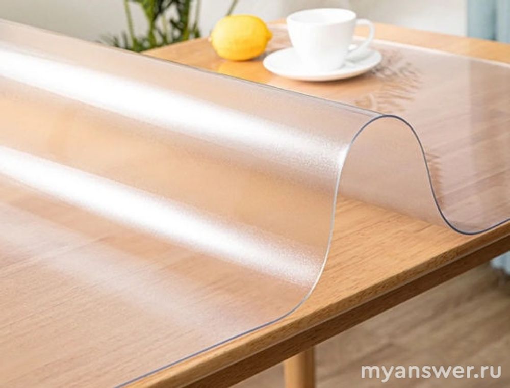 Мы купили гибкое стекло на кухонный стол. Но мы планируем стелить на скатерть! ( сейчас у нас на скатерти лежат сверху салфетки, которые закрывают всю красоту! Так же они не защищают скатерть от пятен, которые потом никак не стирать)