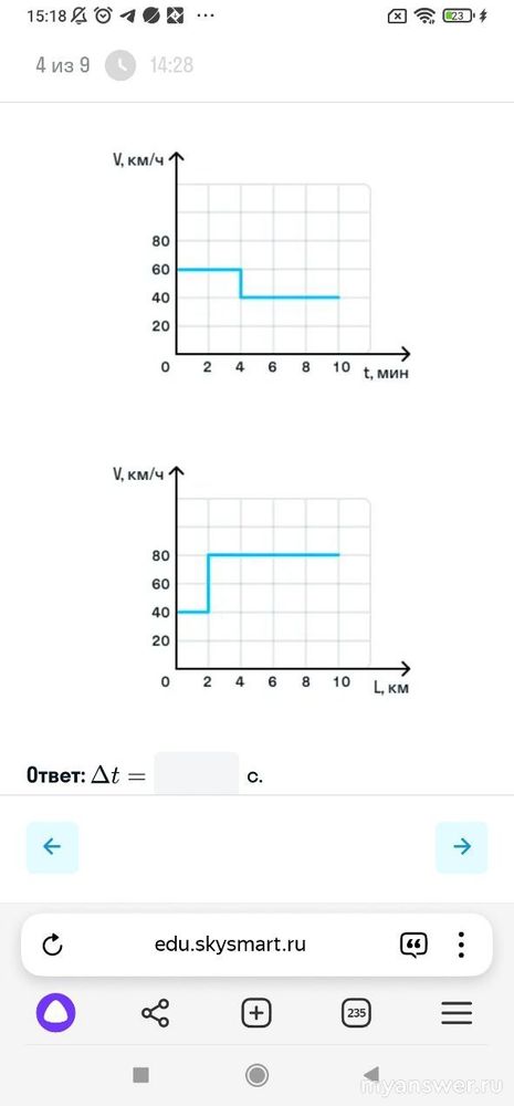 Из графика автобуса видим, что первые 4 минуты он ехал со скоростью 60 км/ч