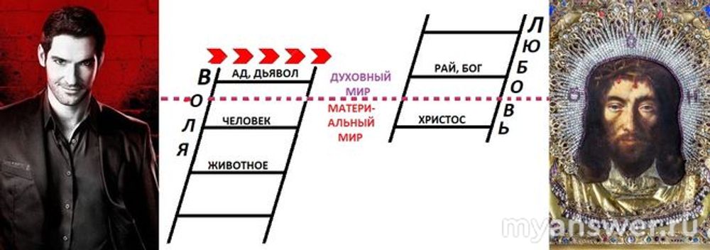Знаменитая Библейская история грехопадения- это не падение с эволюционной лестницы, а переход к основанию новой лестницы. Но старая осталась как свободный выбор.