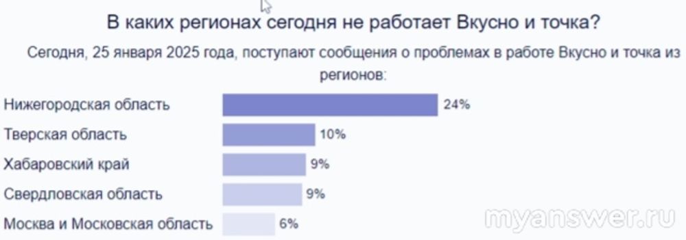 Да, не работает приложение Вкусно и точка сегодня, если сбой визуализировать, то выглядит он вот так, как на диаграмме: